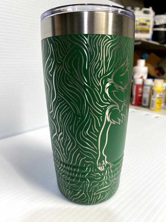 Merry Grinchmas Full Wrap engraved on 20oz Green Tumbler. Christmas, Grinchmas, Fun Cups.